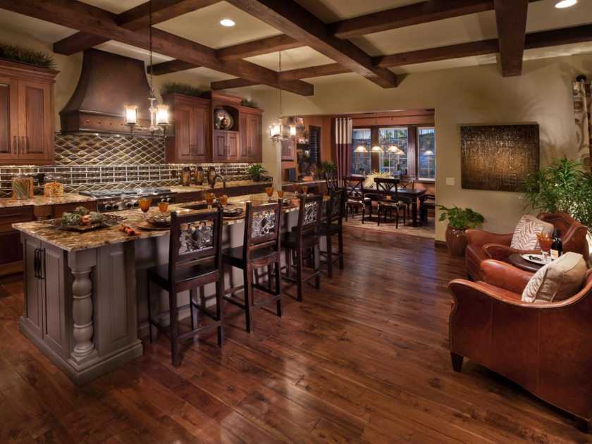 Но стремились к воссозданию такого же декора и люди с меньшим уровнем достатка. Это было признаком недурного тона. В современном мире создать непревзойденный интерьер в кухне очень легко. Но лучше всего это, делать, в больших домах, так как там есть помещения с большой площадью.
