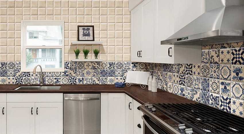 Разрабатывая дизайн фартука, необходимо помнить, что способ раскладки весьма сильно влияет на восприятие уложенного кафеля. Каждая плитка будет по-разному смотреться на стене. Вообще способов раскладки кафеля множество. Рассмотрим каждый из них.