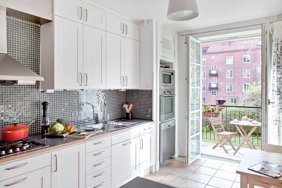 Ярко смотрится зелёная мозаика или терракотовый фартук. Идеально будет смотреться фартук из черной плитки для белой кухни.