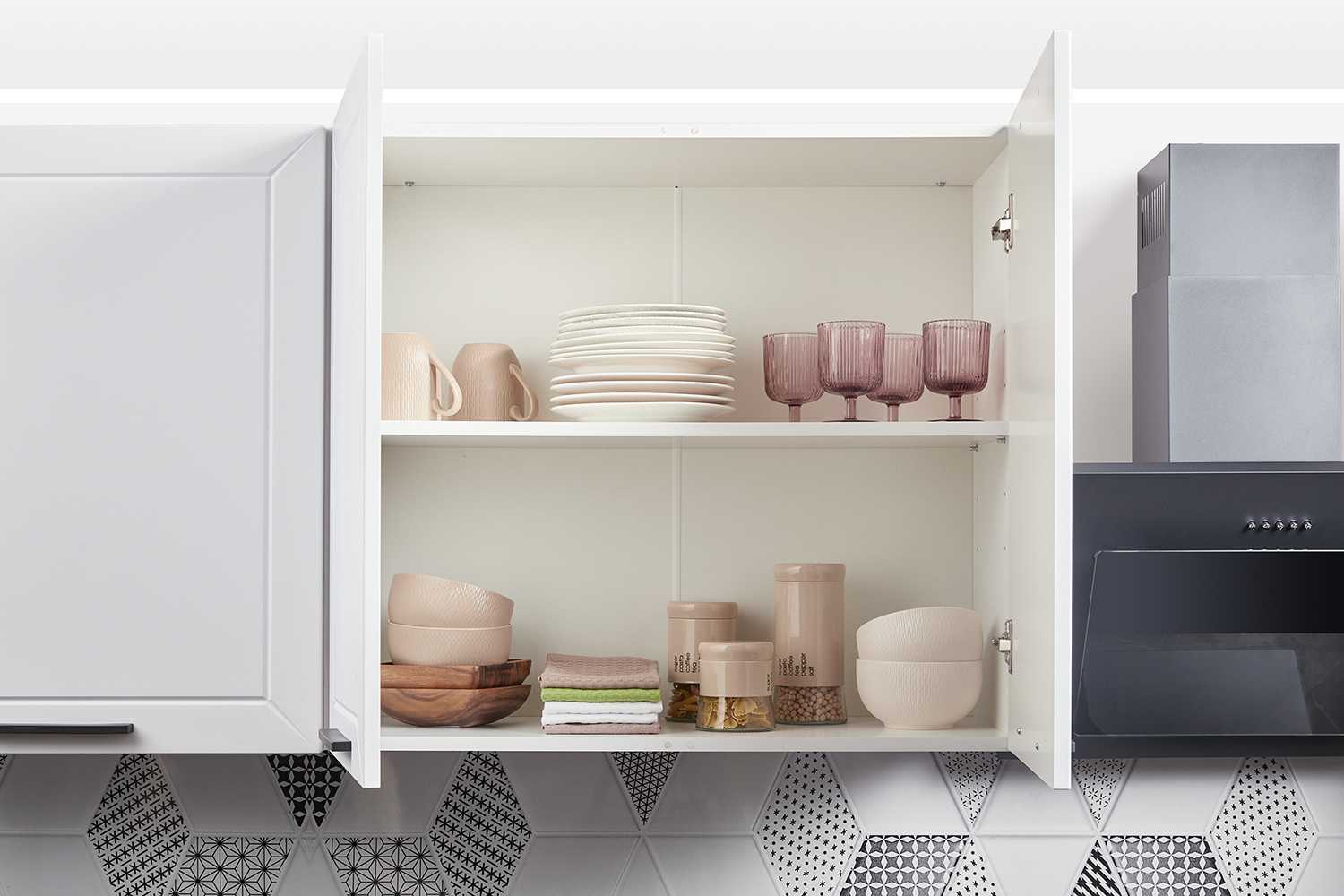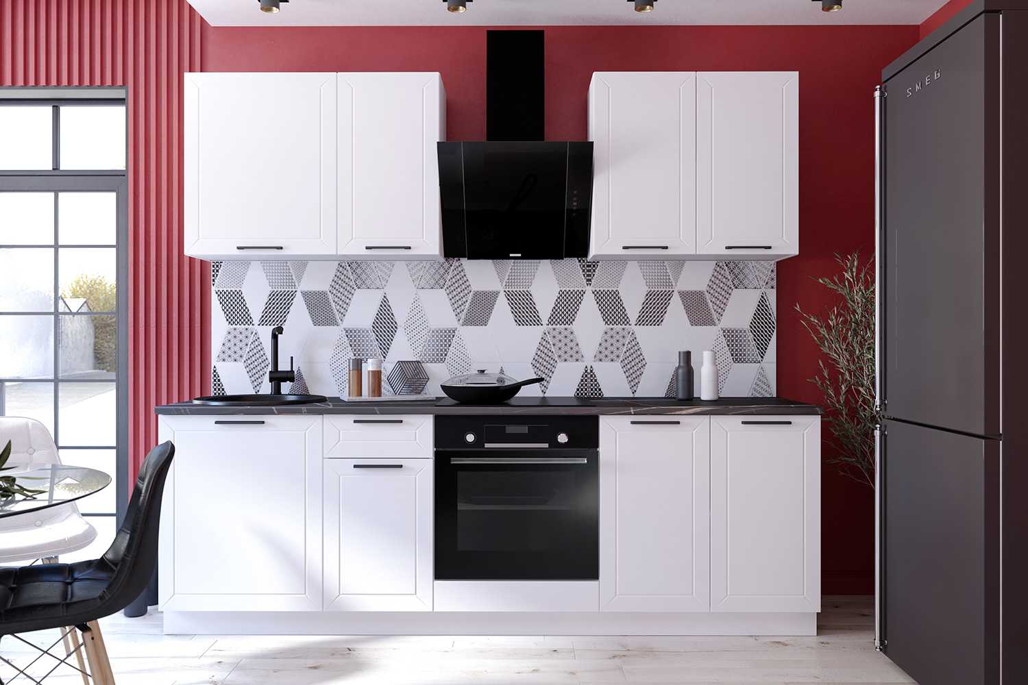 Цвет стен может стать тем фоном, который пластично впишет мебель белого оттенка. В другом варианте чистота таких фасадов выигрышно будет подходить к обоям отличающихся тонов. Яркая фактурная плитка фартука подчеркнет изысканный белый цвет и будет главным акцентным украшением помещения.