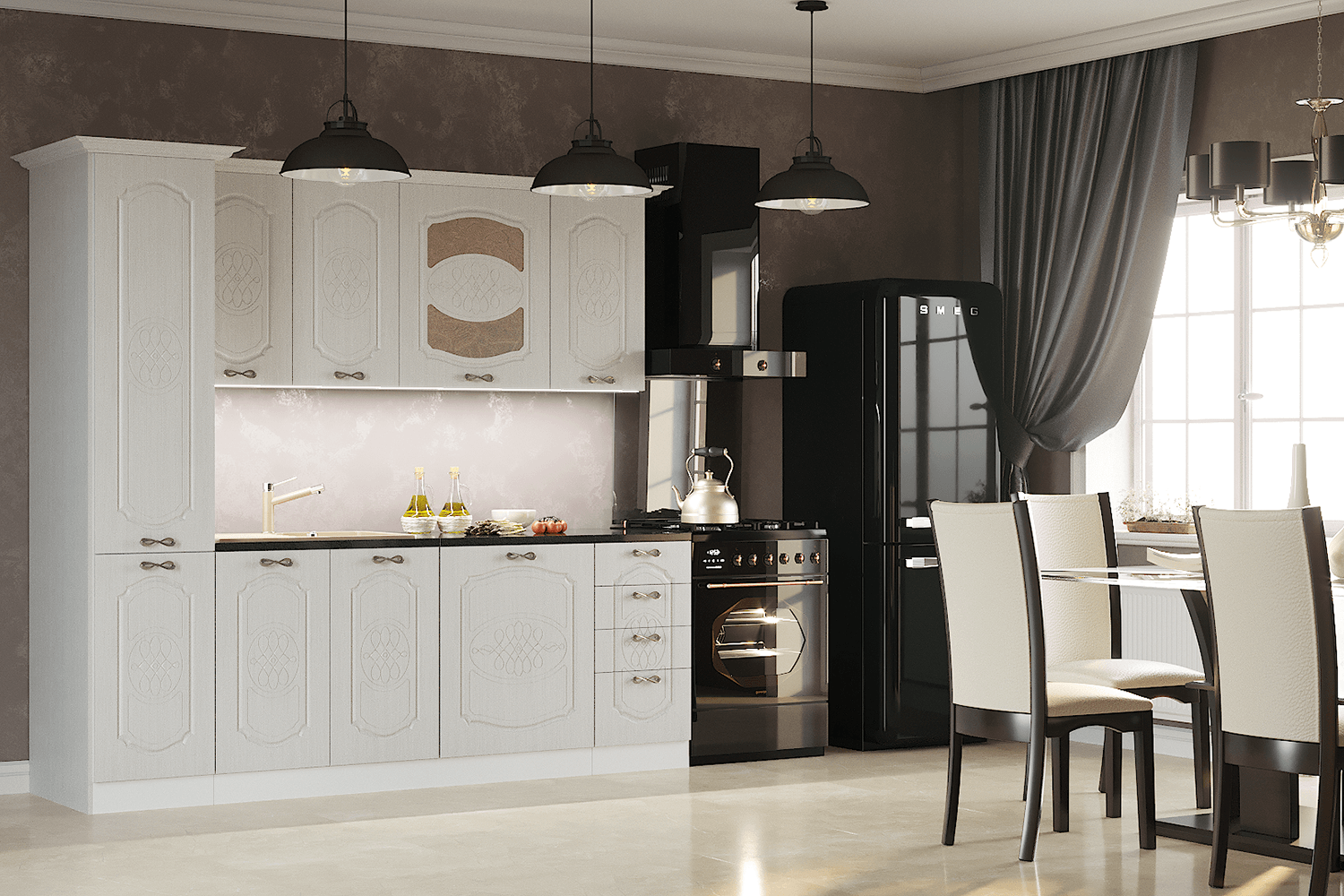 Белый цвет имеет много оттенков, приятных для зрения, придающих помещению четкость, уют. Чего стоят только их названия: цвет белый шепот, звездно-белый, зефирный, сливочный, кремовый и другие. Если белоснежный снижает аппетит от подобия больничной стерильности, то они способны вызывать желание попробовать еду.
