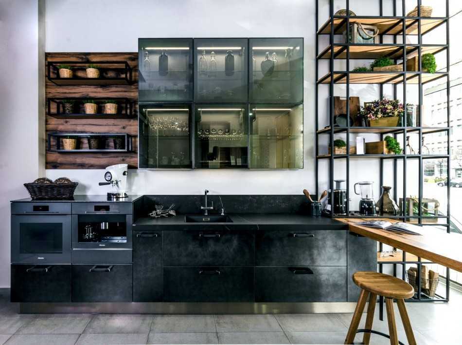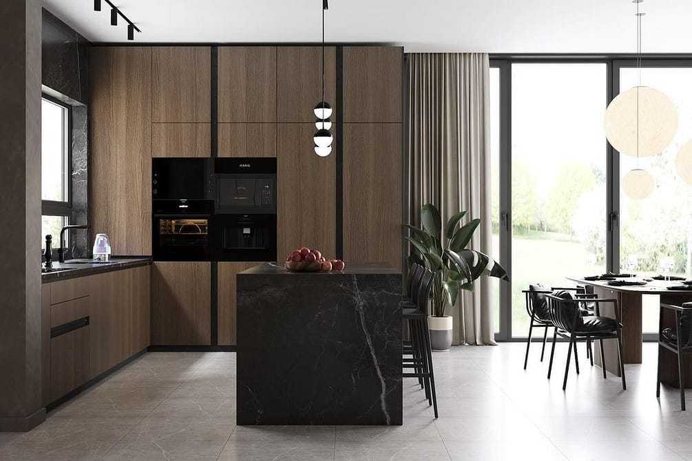 Черная кухня – идея для помещений с хорошим естественным освещением.