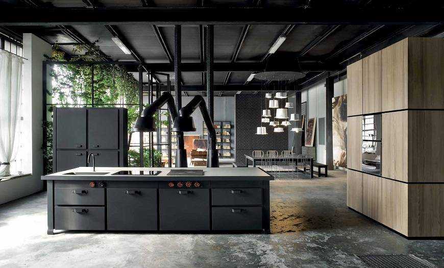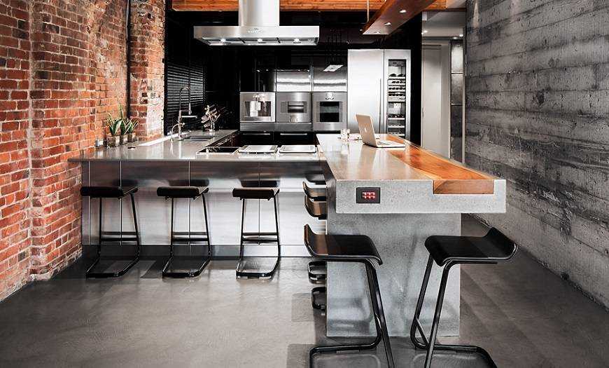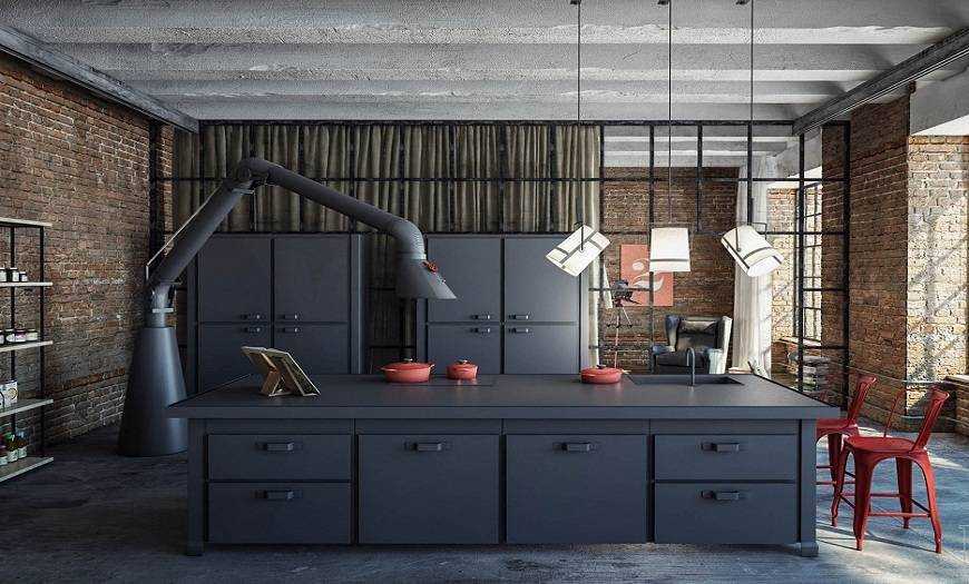 Если кухня имеет небольшую площадь, а хочется оформить ее в модном стиле, то есть вариант выгодного объединения с лоджией – площадь значительно увеличится, а заодно будет больше света. Более правдоподобно смотрится объединенная кухня с гостиной – именно это сочетание создает иллюзию промышленного помещения.