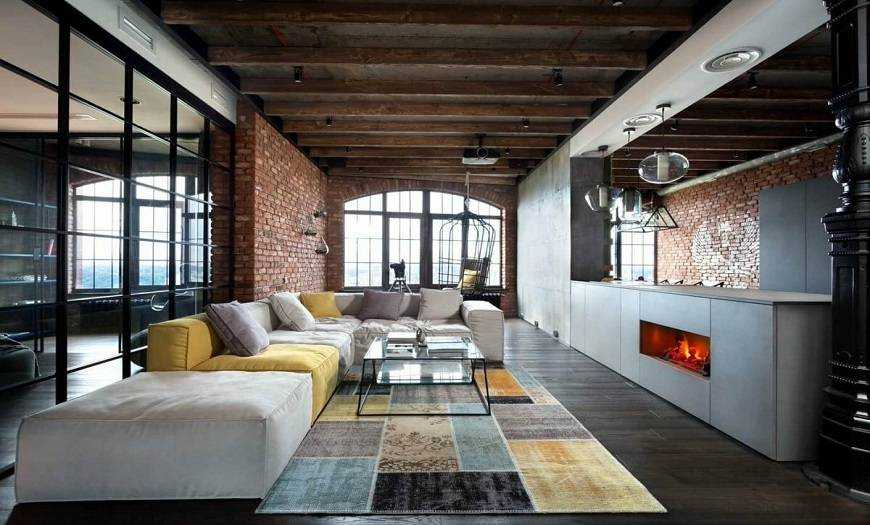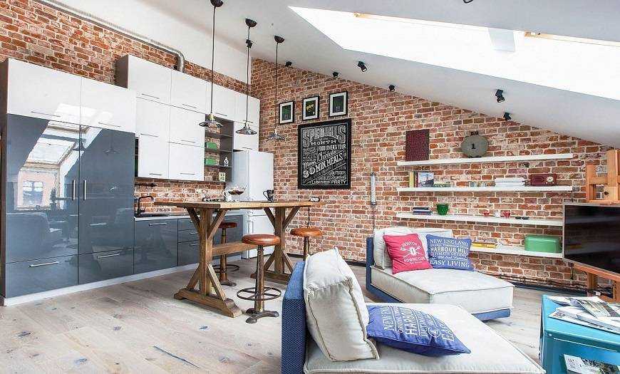 Белый кирпич в интерьере с элементами лофта и скандинавского