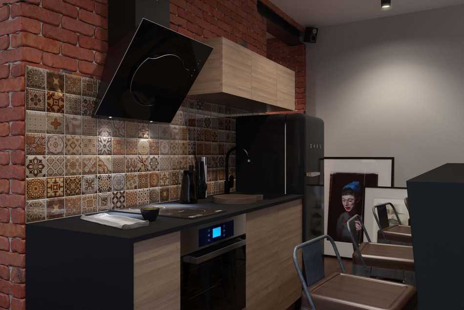 Кухня размером 9 кв.м. считается достаточно просторной. Воссоздать лофт дизайн в таком помещении проще, чем на 6 кв.м. Помимо рабочей зоны здесь можно создать уютный обеденный уголок. Позаботиться о грамотно выполненном зонировании.