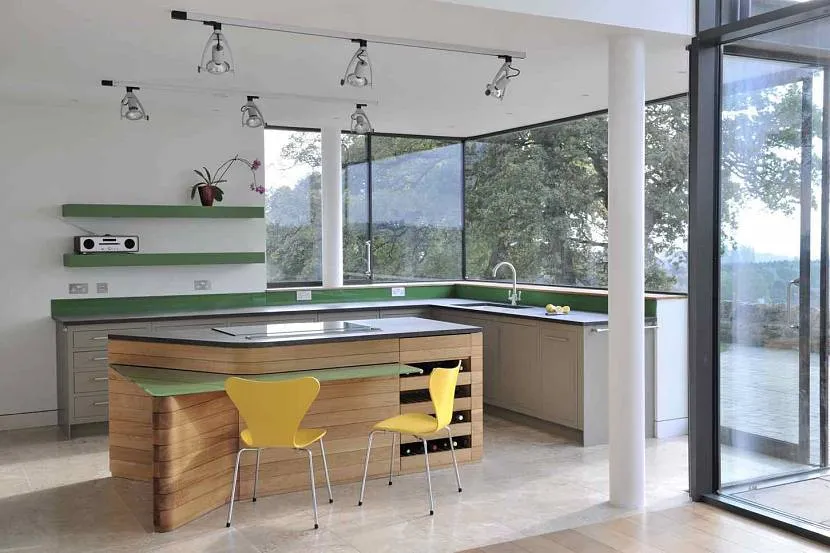 Желтая столешница относится к ряду притязательных, удачно сочетать которые не так-то просто. Наиболее распространенные варианты – желто-белый и желто-черный, и правила здесь во многом похожи на упомянутые при рассмотрении красного цвета.
