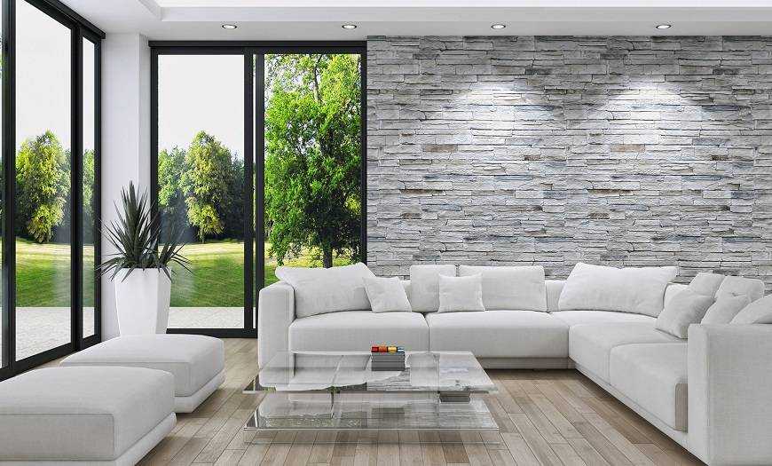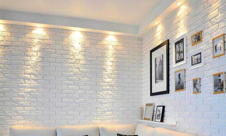 Кирпичная кладка в сером или даже белом исполнении – отличный вариант для маленькой комнаты или с окнами, выходящими на южную сторону.