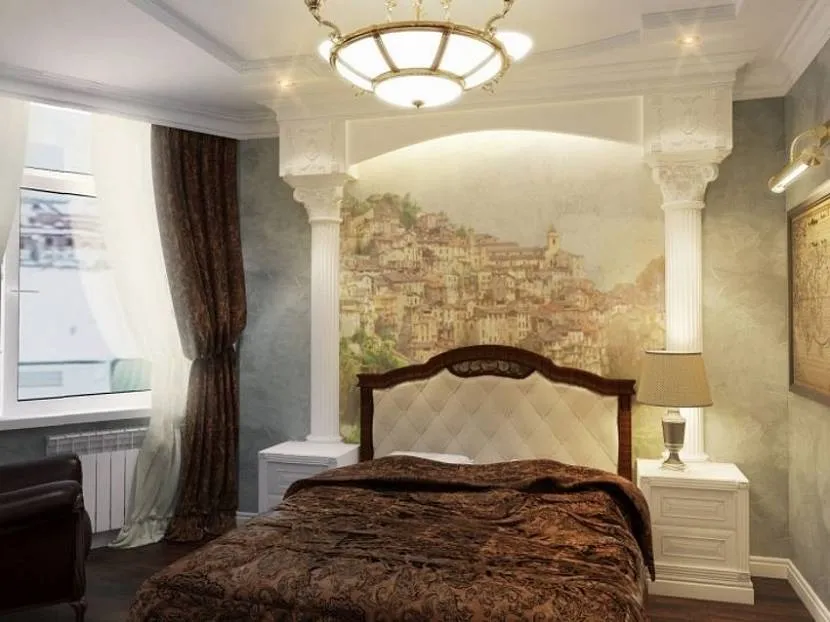 В завершении, обратите внимание на то, каким образом можно красиво отделать колонны в спальне. Спальня с декоративной колоннойИсточник www.belnovosti.by