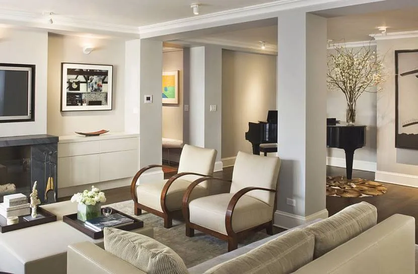 По аналогичному принципу проследим любопытные методы удачного интерьера на примере стильной — гостиной с одной или несколькими колоннами, расположенными в разных местах.
