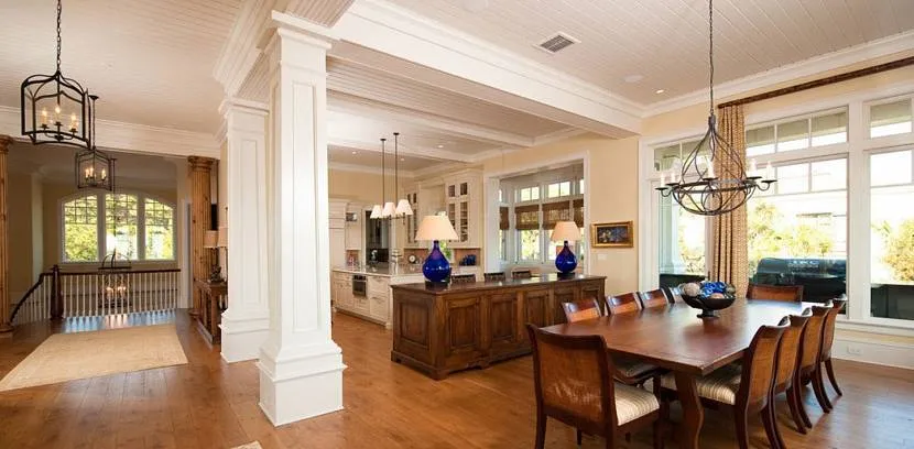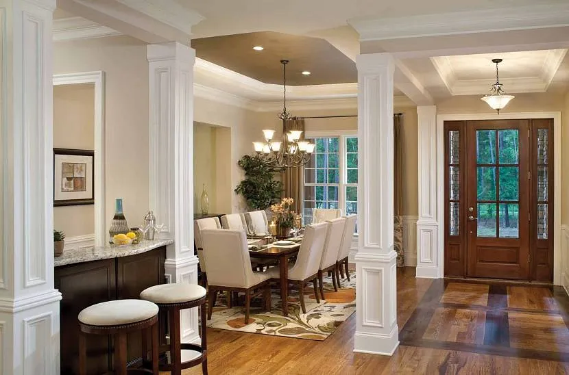 Колонны из натурального дерева или камня могут выполнять функции несущих конструкций – поддерживать перекрытия. Даже если во время проектирования дома их не было, специальные разрешения не потребуются, если вы их решите установить.