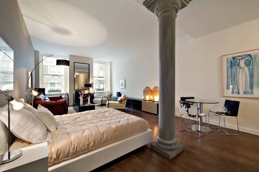 Студия, поделённая с помощью декоративных колоннИсточник cloudfront.net