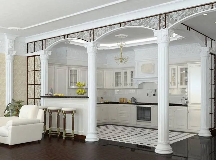 Колонны в гостиной, оформленной в античном стилеИсточник akuhnja.com