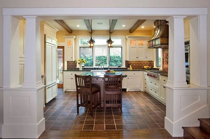 Колонны в интерьере кухни-столовойИсточник happymodern.ru