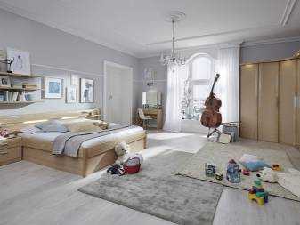 Для подростков важно учитывать цветовую гамму и ощущение безопасности и комфорта. Молодые супружеские пары обычно выбирают компромиссные варианты, где есть мебель для каждого – например, наличие туалетного столика или большой тумбы под телевизор