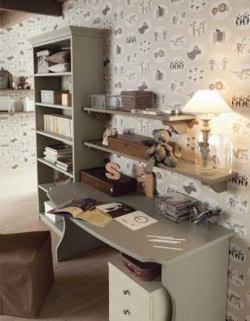 - Для занятий и творчества предусмотрено рабочее место с навесными полками.