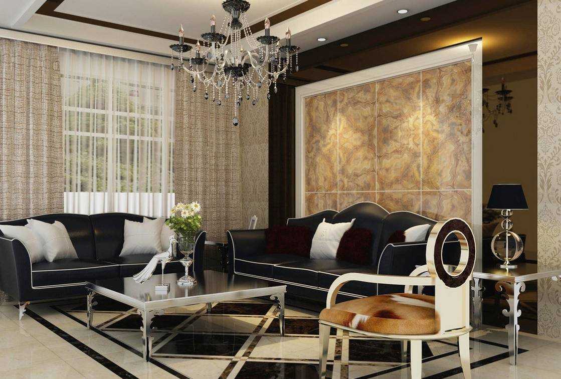 Для высоких потолков выбирайте лепнину и плинтусы. Дополнит оформление хрустальная люстра, имеющая много подвесок. Популярным решением для пола становится паркет или ламинат, по фактуре напоминающий дуб. Если хотите подчеркнуть собственный статус, оформите пол под мрамор. Для стен подходит венецианская штукатурка. Если предпочитаете обои, тогда выбирайте модели с геометрическим или растительным узором. Для декорирования подходят деревянные панели. Можно сделать смешанное оформление. Низ в более темных тонах, середина в светлой гамме и завершается композиция белой лепниной под потолком.