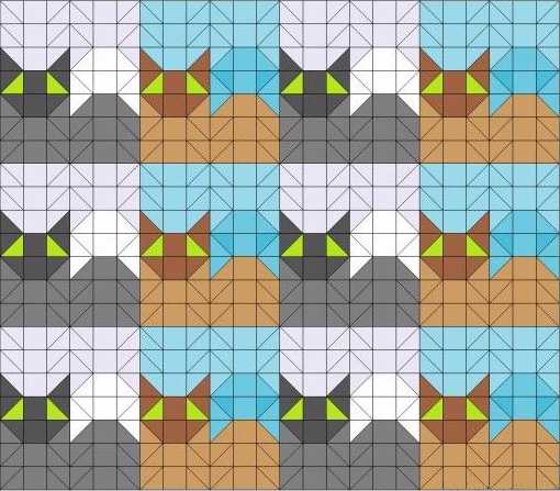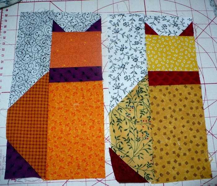 Подворачивая при сшивании лоскуты вы получите кошачью мордочку.