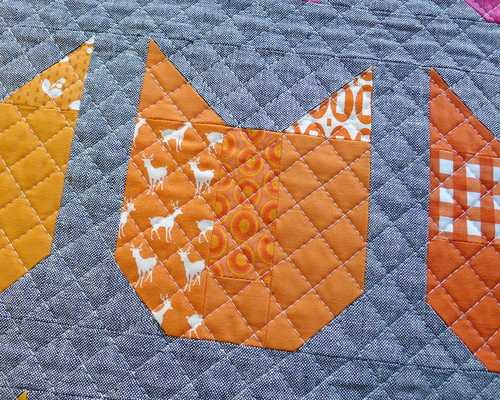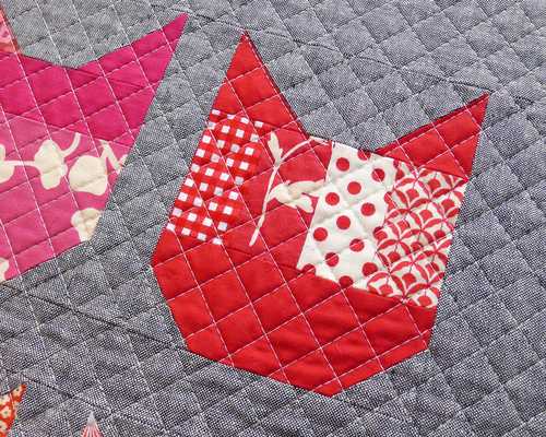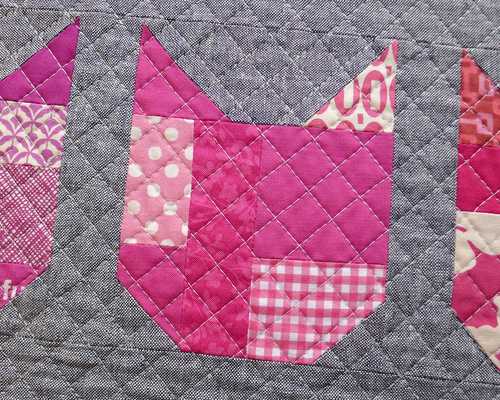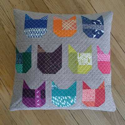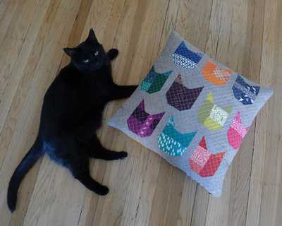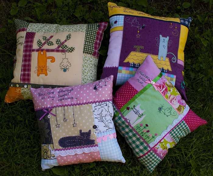 Помимо геометрии можно также создавать и картиночный пэчворк. Например, на этих подушках симпатичные котики.