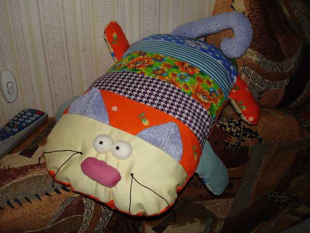 Далее идет более сложный вариант подушки пэчворк с котиком.