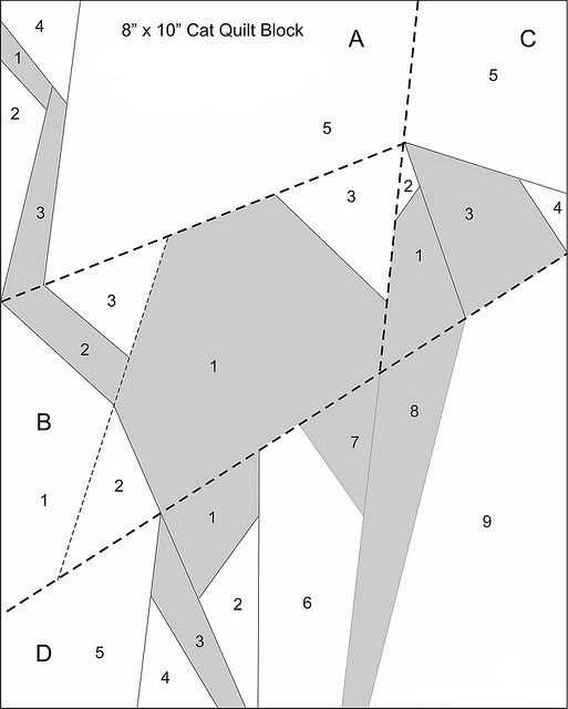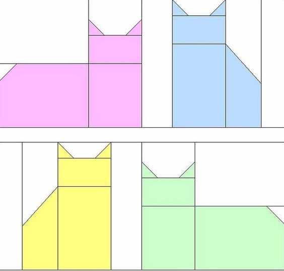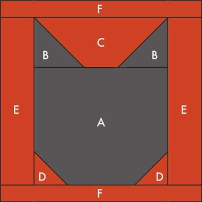 Схема пэчворк подушки с силуэтом кошачьей головы с ушками.
