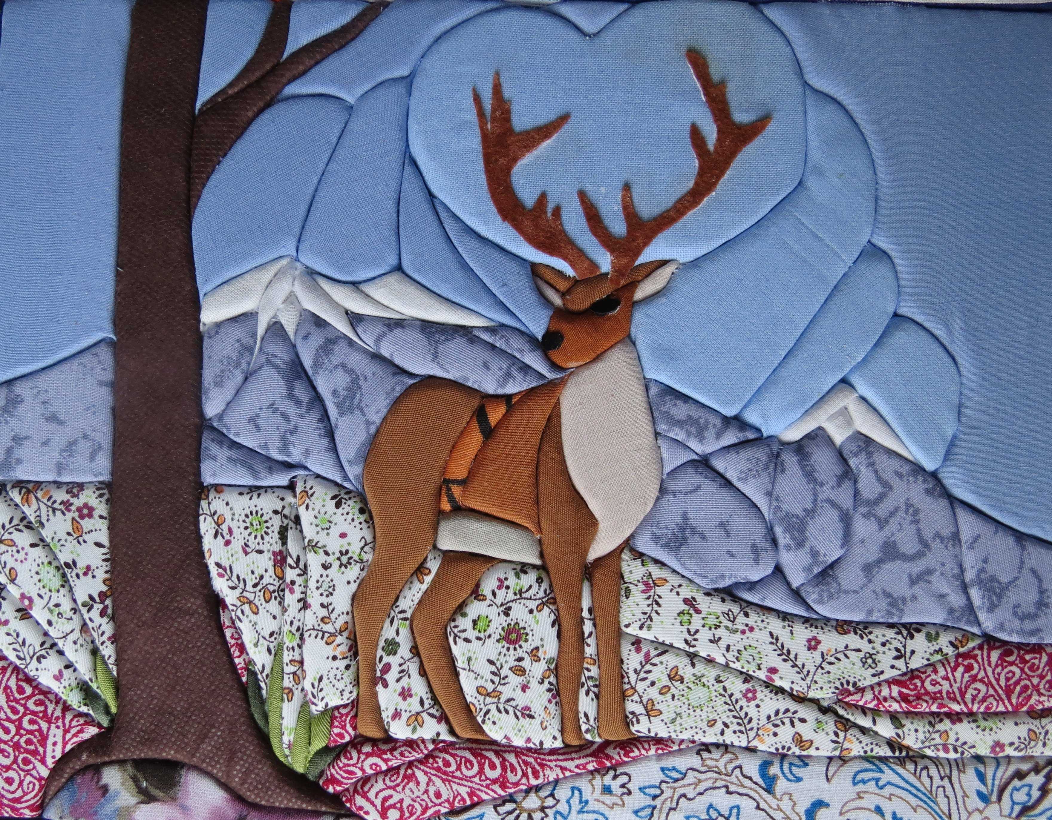 В технике пэчворк выполняют как отдельные рисунки, так и модульные композиции. Для картинных блоков используют ткань с крупным принтом, разрезав ее на части.