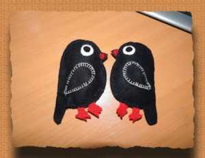 - Перед тем как пришить животных на место, с обратной стороны деталей прокладывается синтепон, чтобы фигурки были объемными.