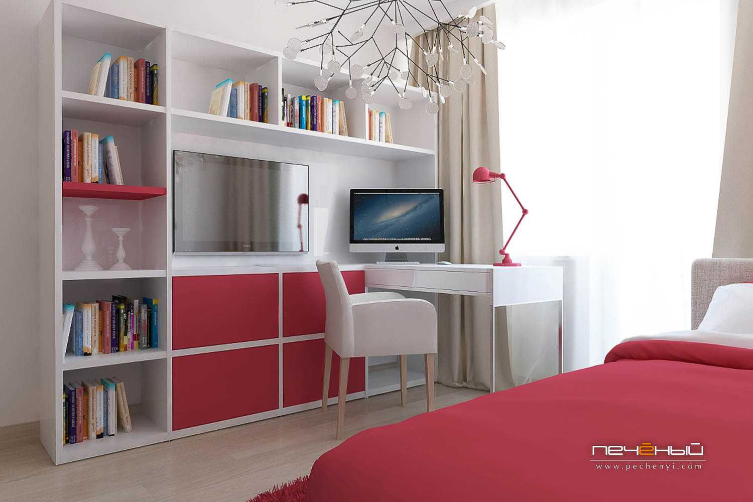 Удобное место для работы за компьютером — ключевой элемент в комнате подростка.