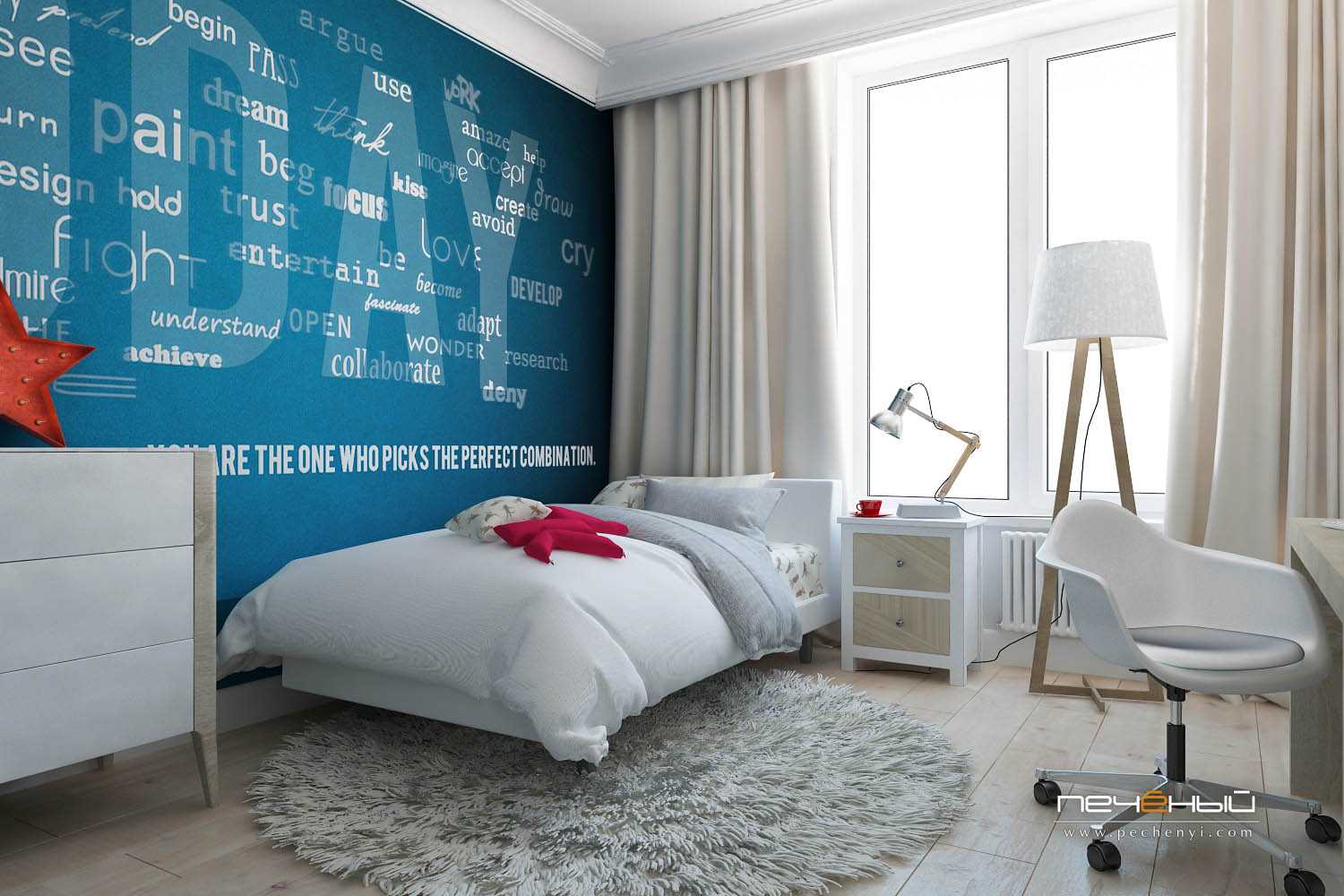 И, как правило, финальный вариант дизайна пригоден не только до окончания школы, но и до студенчества и «взрослой» жизни, пока молодой человек живет с родителями.