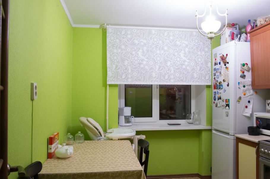Лайфхак для маленькой кухни в хрущевке — рулонные шторы надля окон, они сэкономят пространство