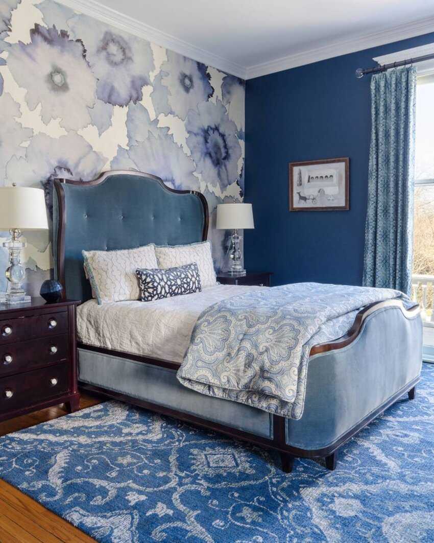 Обои-компаньоны в спальне становятся удачным дизайнерским ходом, сочетающимся с различными изображениями и фактурными поверхностями.