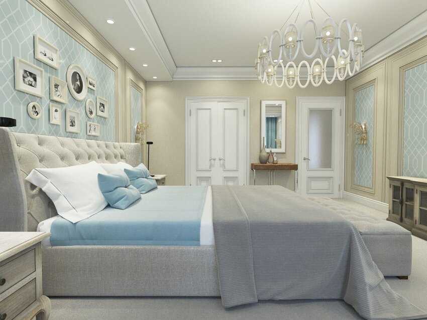 Стандартный и самый лучший вариант классических обоев для спальни, это обои с цветным фоном и узором без сильного контраста. Это может быть либо узор, отличающийся от основного цвета на 1-2 тона, либо серебряный или золотой узор.
