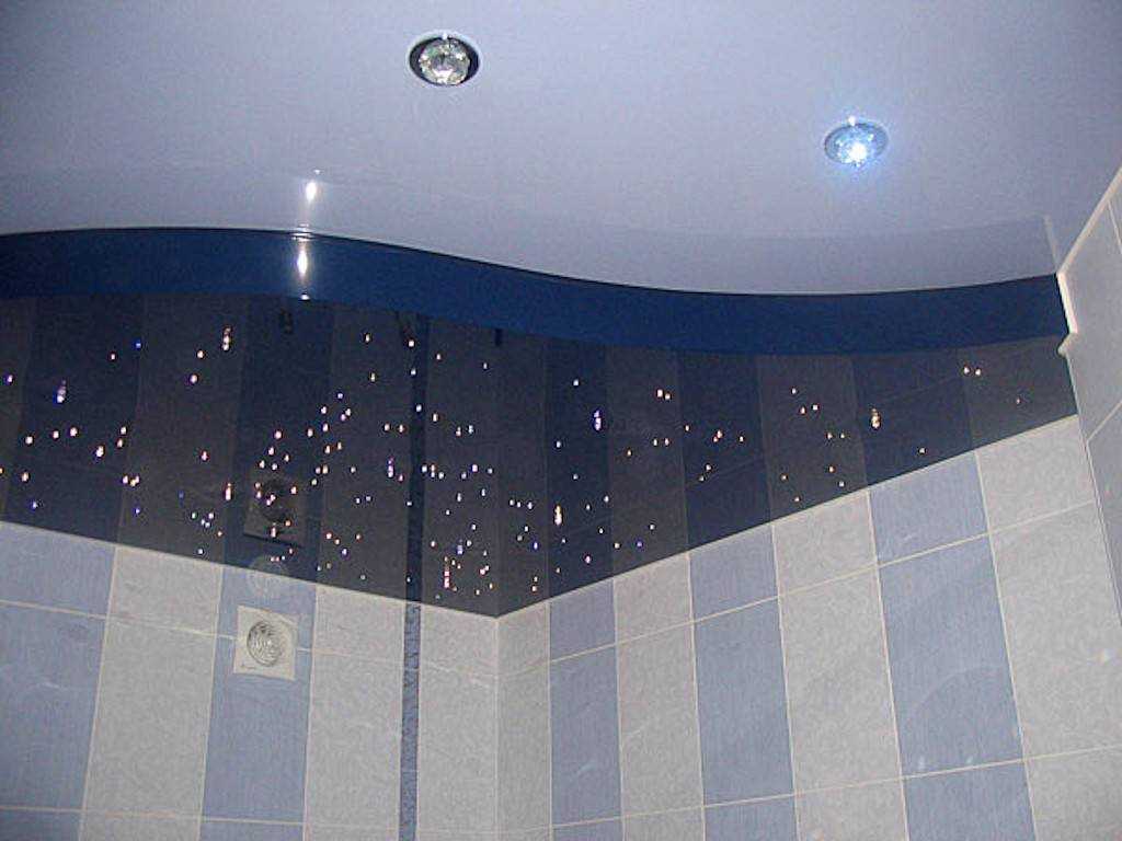 Яркость и величина каждой «звезды» также зависит от количества оптических волокон, подведенных к той или иной точке. Такие натяжные потолки днем выглядят как обычные, так как на их поверхности нет проколов и видимых кончиков оптоволоконных нитей.