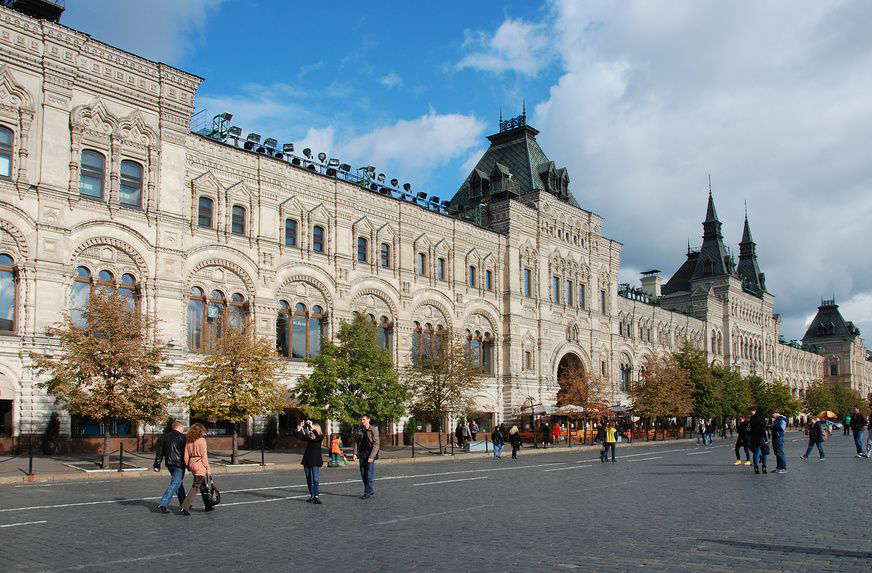 В начале 1880 — х годов стиль Ропет заменил псевдо-официальный русский стиль, копируя буквально образцы русской архитектуры XVII — го века. Здания чаще всего строятся из кирпича или белого камня и декорированы в традиционном русском народном стиле. Колонны этой архитектуры пузатые, потолки перекрыты узкими арками, оконные проемы узкие, фрески украшают стены растительным орнаментом, широко используется фаянсовая плитка. Именно в этом жанре этажи торговых галерей нынешнего здания ГОУМа (1890–1893 гг.) Построены его архитектором ( Александром Померанцевым (ru) ) зданием Государственного Исторического музея (1875–1881 гг. Архитектор Владимир Червоуд). (в) ), вся Красная площадь в Москве, и Savvinskoïe подворье архитектор Иван Кузнецов (последний в начале XX — го века).