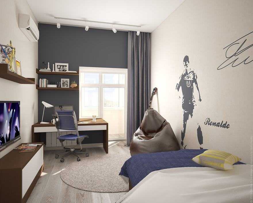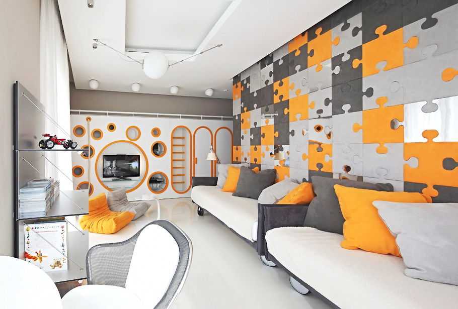 Можно разработать интересный тематический дизайн детской: комната космонавта, моряка, автогонщика, футболиста. Для девочки: комната принцессы, Алисы, кошечки, лесной феи и т.д. Нельзя игнорировать спортивные занятия детей. Для них должно быть выделено пространство с зеркалом и шведской стенкой.