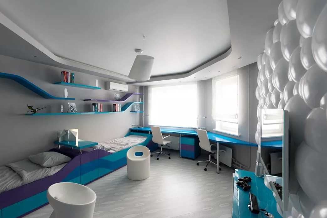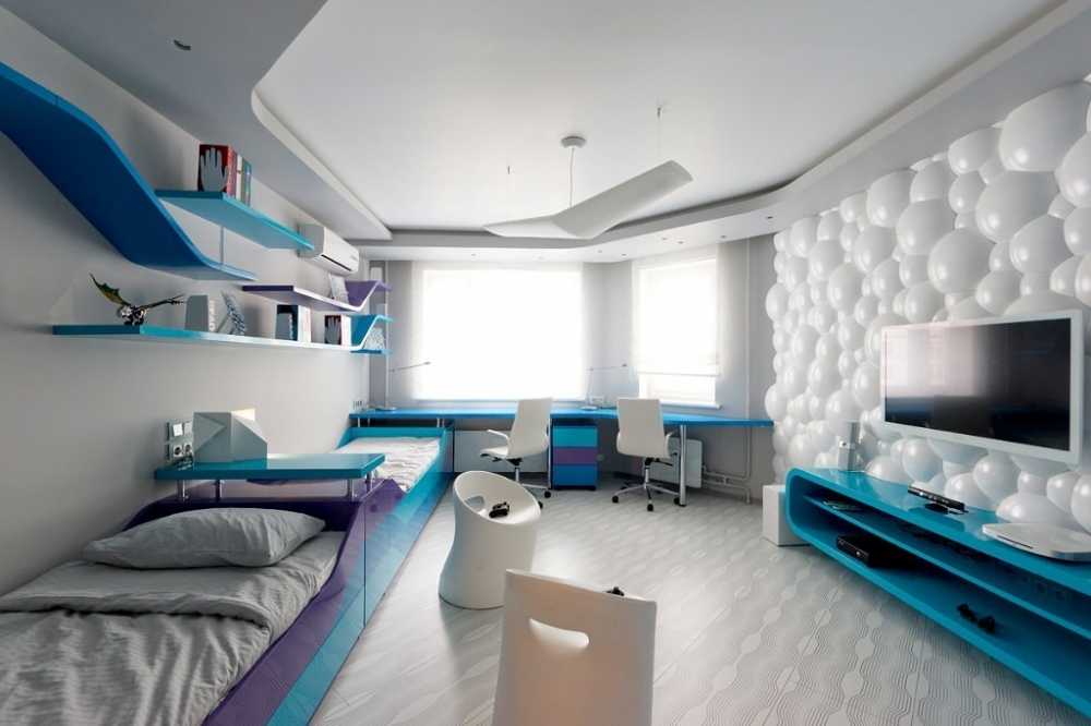 При перепланировке детской спальни тщательно продумайте освещение, полки и кровати.