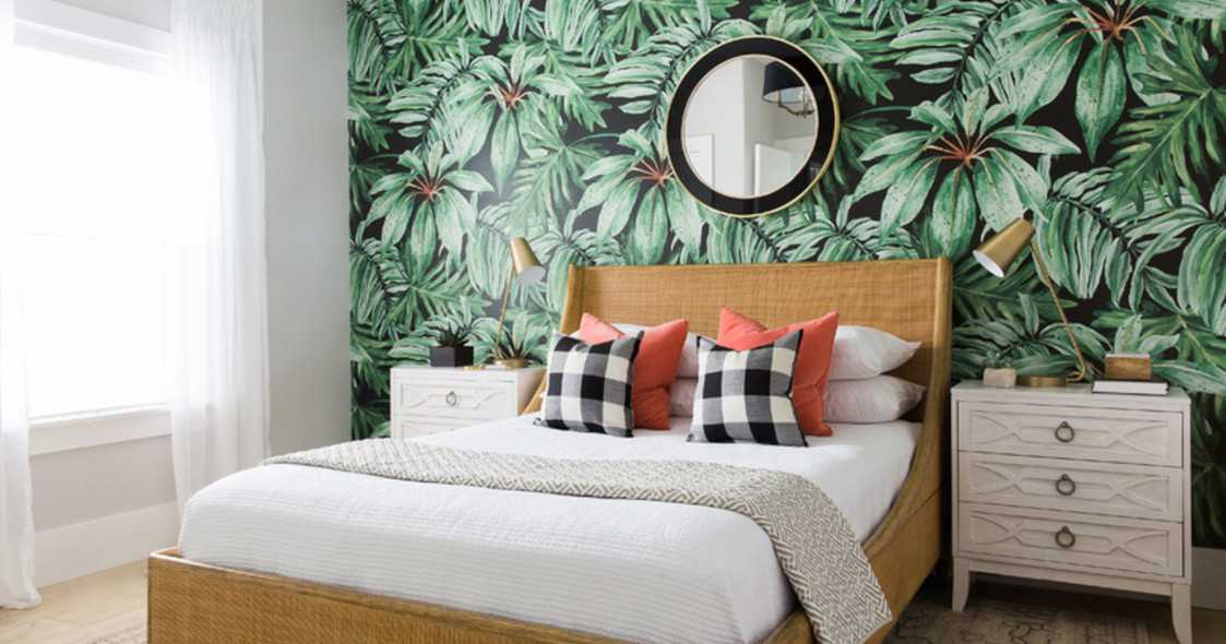 Эффектные обои — это кардинальный способ преображения пространства. Варианты с тропическими листьями настолько броские, что нельзя ими злоупотреблять: слишком динамичные обои лучше клеить только на одну акцентную стену, чтобы они не начали вас раздражать через месяц.