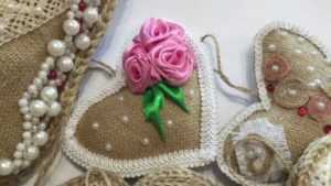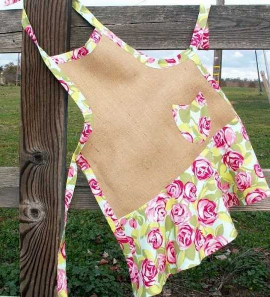 Для этих изделий лучше подойдут украшения вышивкой, кружевом или в виде аппликации из тканей. Другие предметы шьются из плотных материалов и дополняются элементами из полотна мешковины: фартук, подставка под горячую посуду, прихватки.