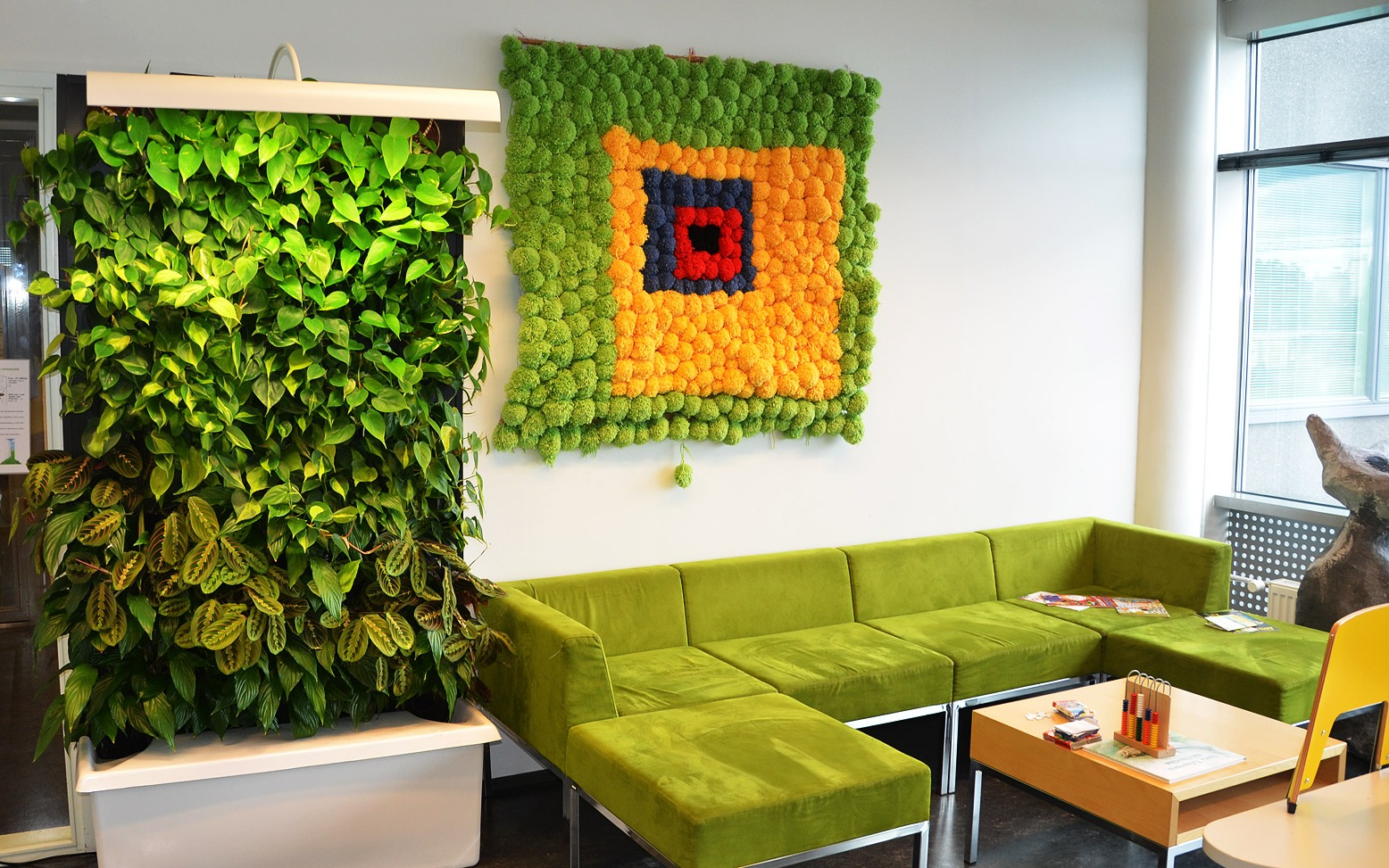 Зелёные растения дополняют яркую обстановку и вносят цветовой баланс