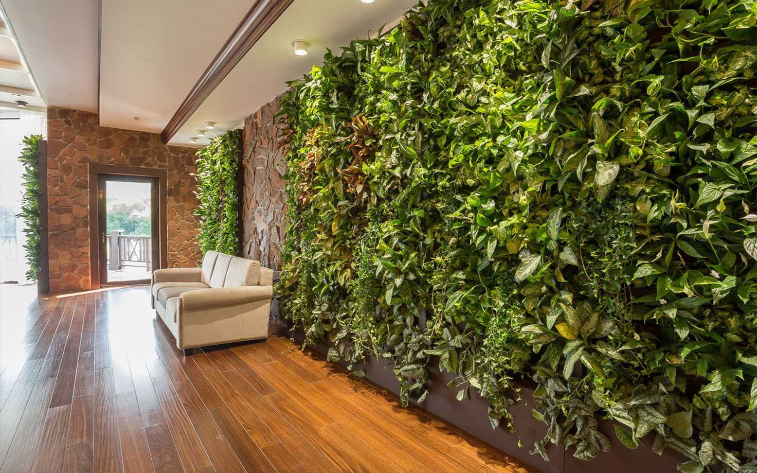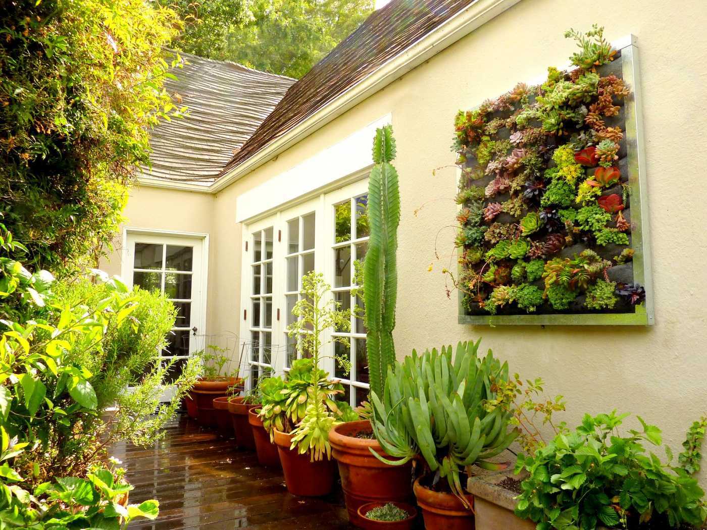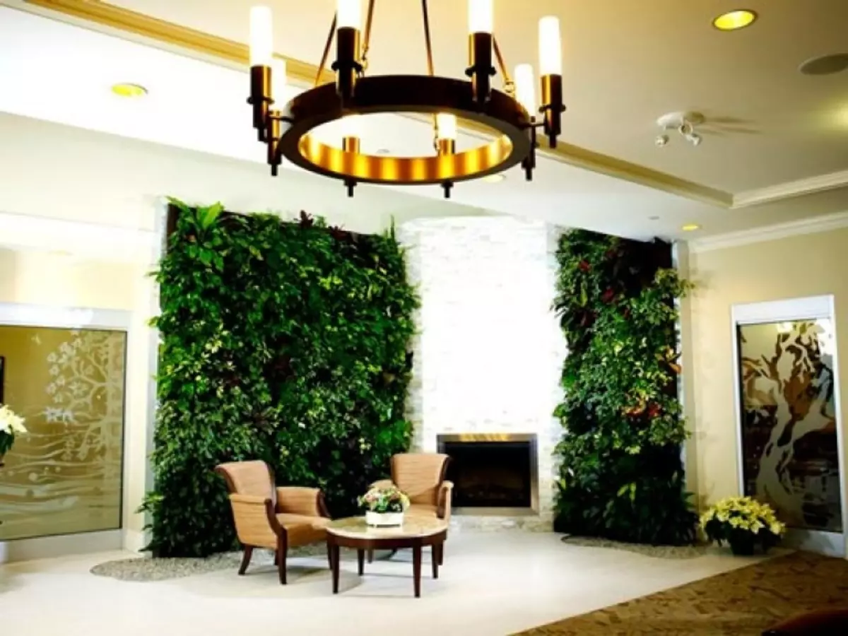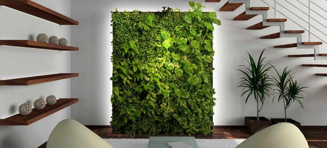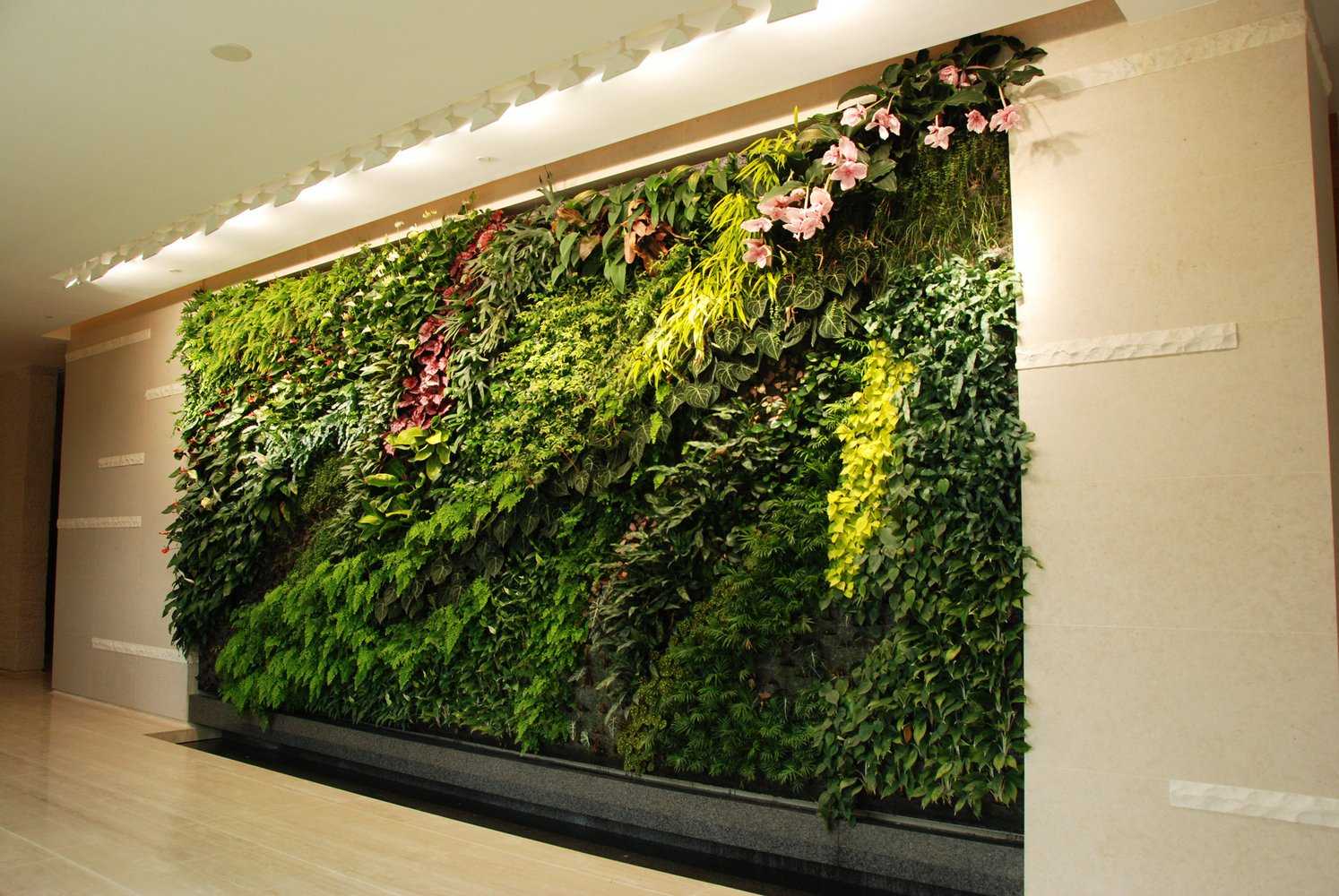 На стенах обычно размещают цветущие растения (для оживления гладкой светлой стены) и лианы (для оформления окон, картин).