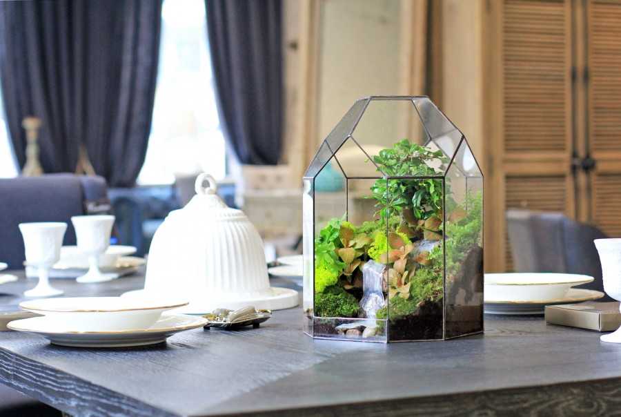 В топе модных интерьерных новинок 2017 г. комнатные растения, помещенные в стеклянные флорариумы. Это стильное украшение для дома в виде мини-садика, заключенного в бутылку, аквариум или банку. Для создания подобного декора подходят карликовые растения, суккуленты.