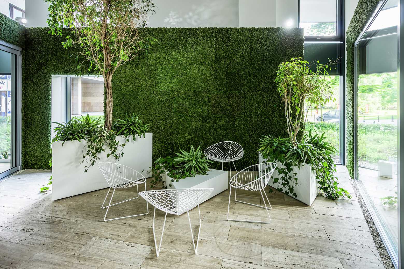 Деревья в садовом интерьере