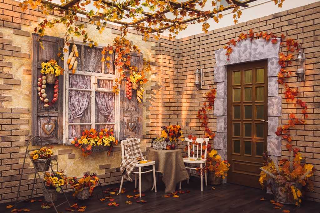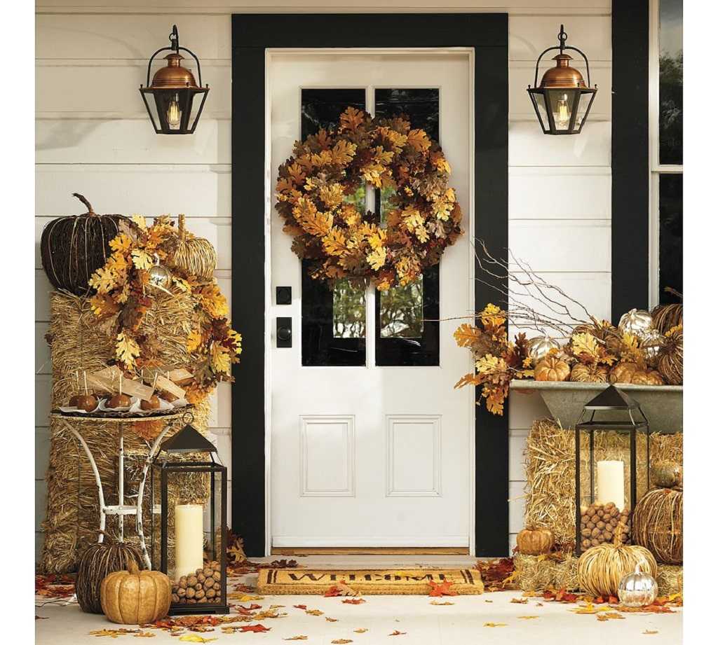 В частных домах с верандами, также проводят декорирование входных площадок открытого или закрытого типа. На закрытых верандах с осенним интерьером прекрасно гармонирует плетеная из лозы, бамбука или ротанга мебель.