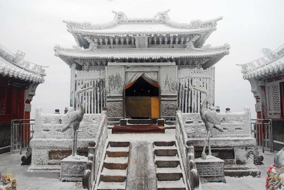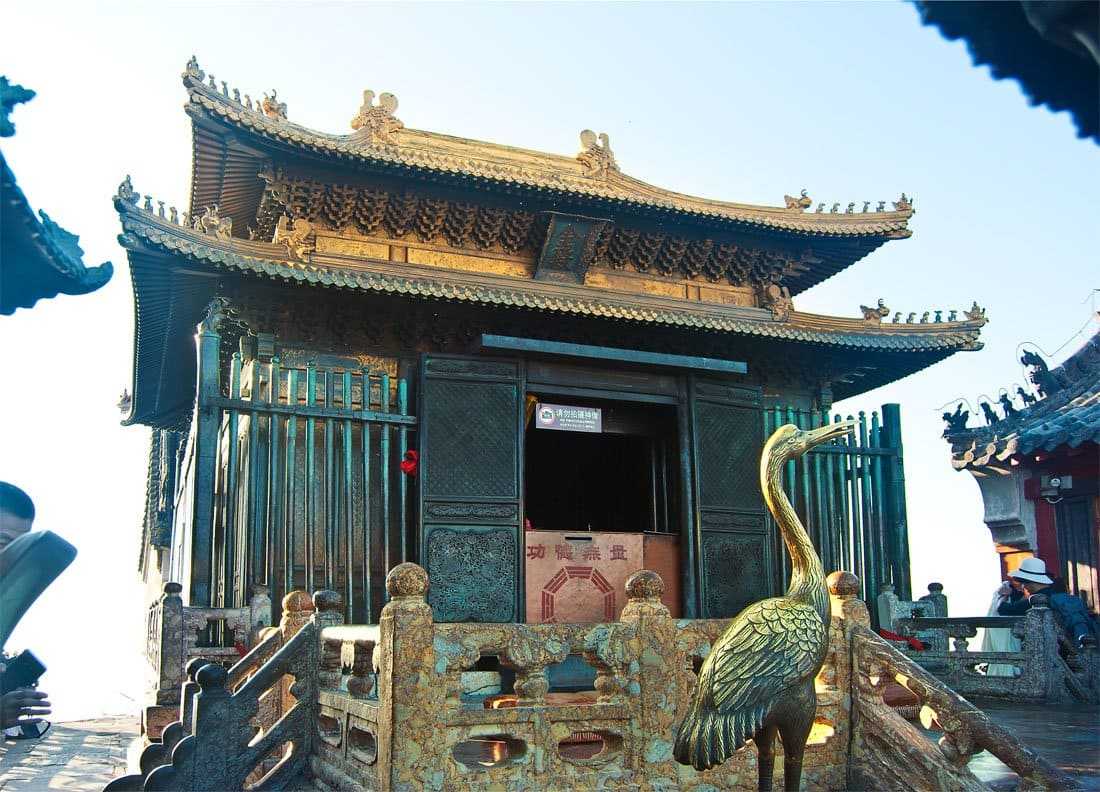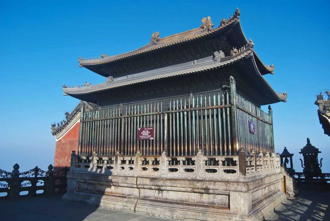 Храм Цзиньдянь (金殿) или Золотой храм построен из литой бронзы, имитируя деревянную конструкцию. Является одним из самых крупных храмов в Китае, выполненных из этого материала.