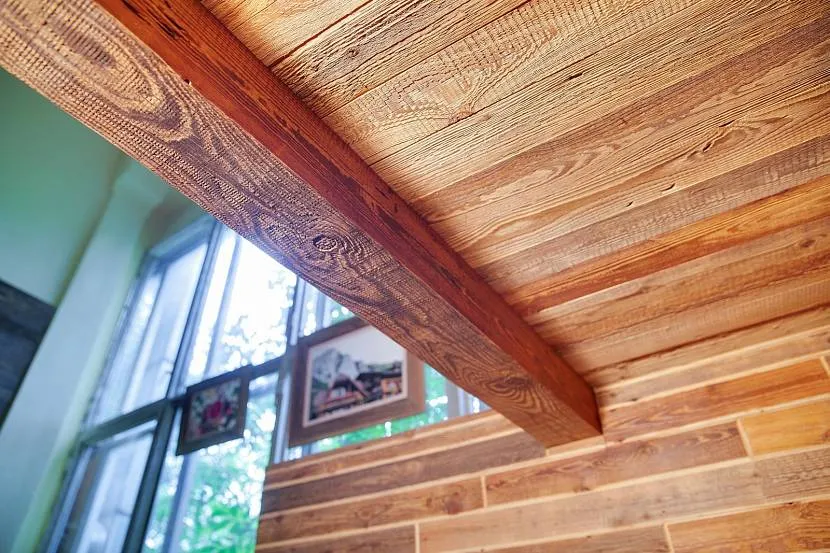 Цвет деталей стоит выбирать исходя из общей задумки, если нужно акцентировать внимание на балках, то они должны быть яркими или контрастировать с цветом потолка и других поверхностей. Если такой задачи нет, то можно использовать перекладины, которые будут совпадать с оттенком потолка