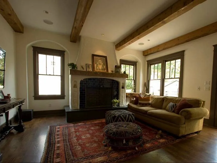 Интерьер с балками на потолкеИсточник www.houzz.com