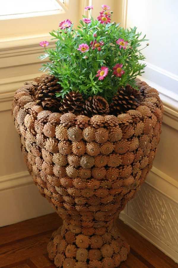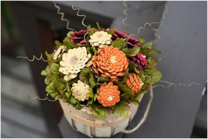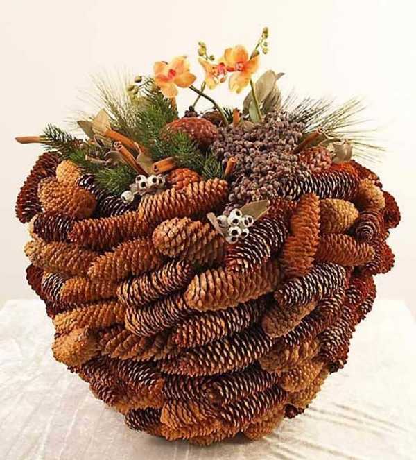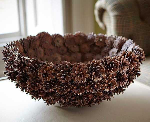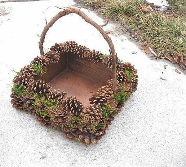 Корзинку из шишек без труда можно сделать своими руками. Единственное чем нужно запастись: свободным временем, терпением и материалами.