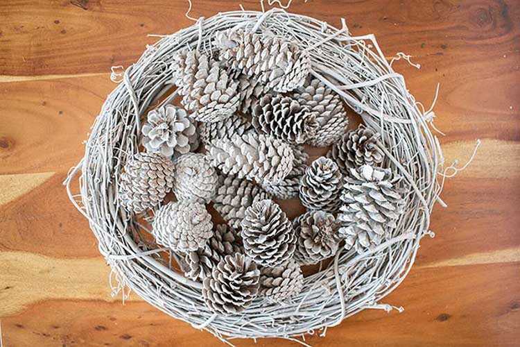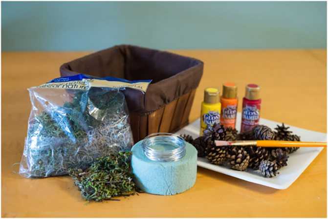 Когда все составляющие на руках, можно приступать к изготовлению корзины из шишек: