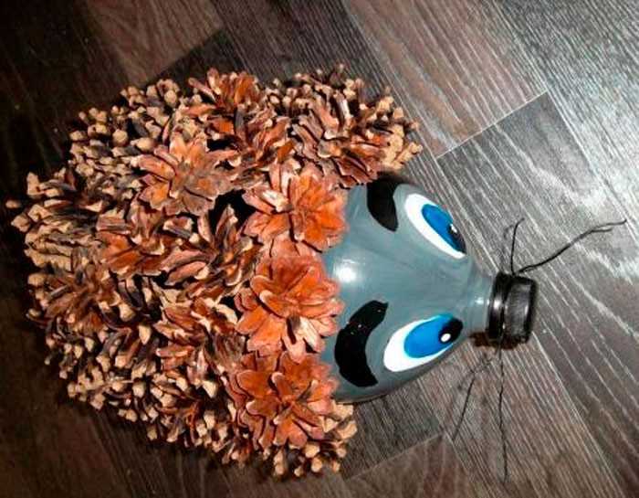 5. Глаза можно сделать из 2 чешуек шишки, а зрачки из пластилина.