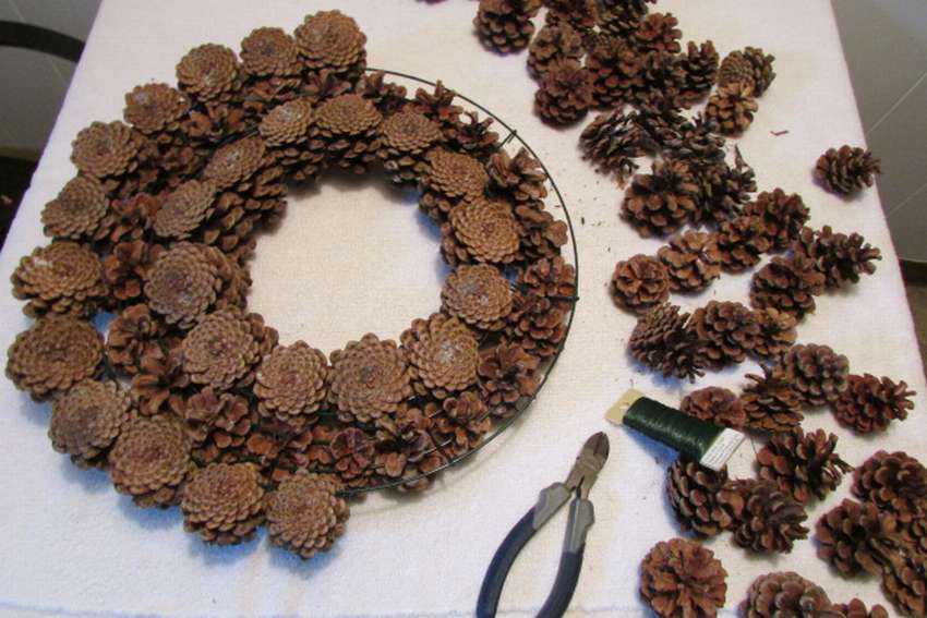 Дополнительные фото-мастер-классы, как сделать новогодний венок из шишек: