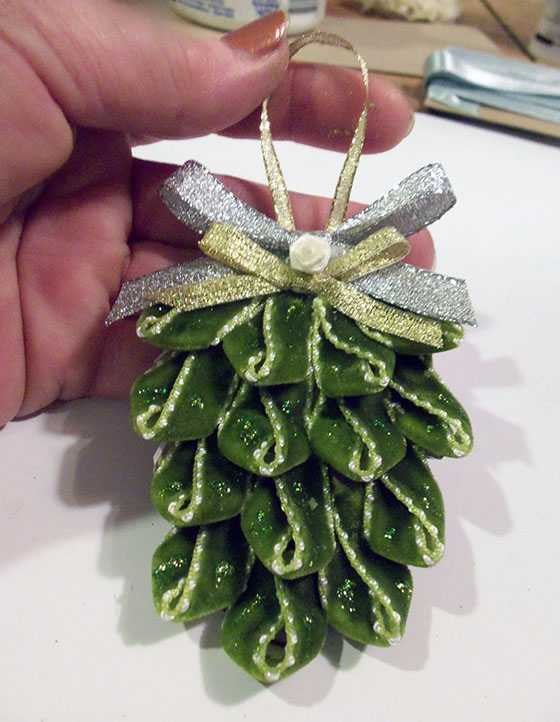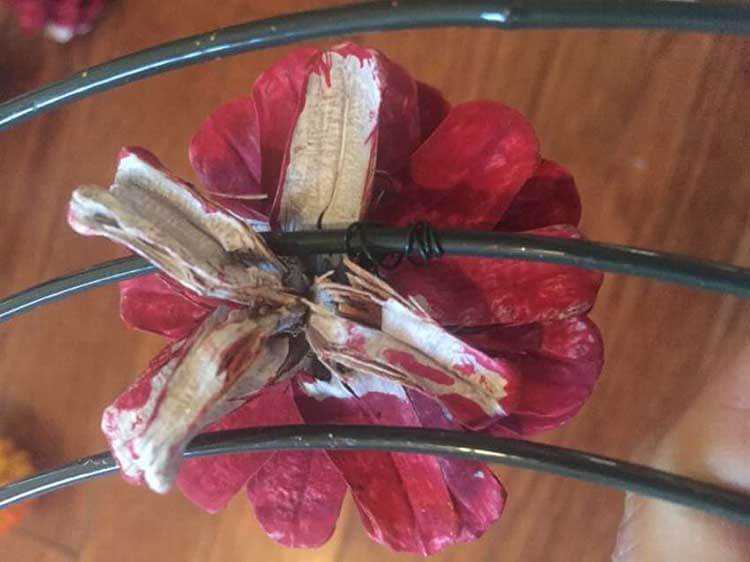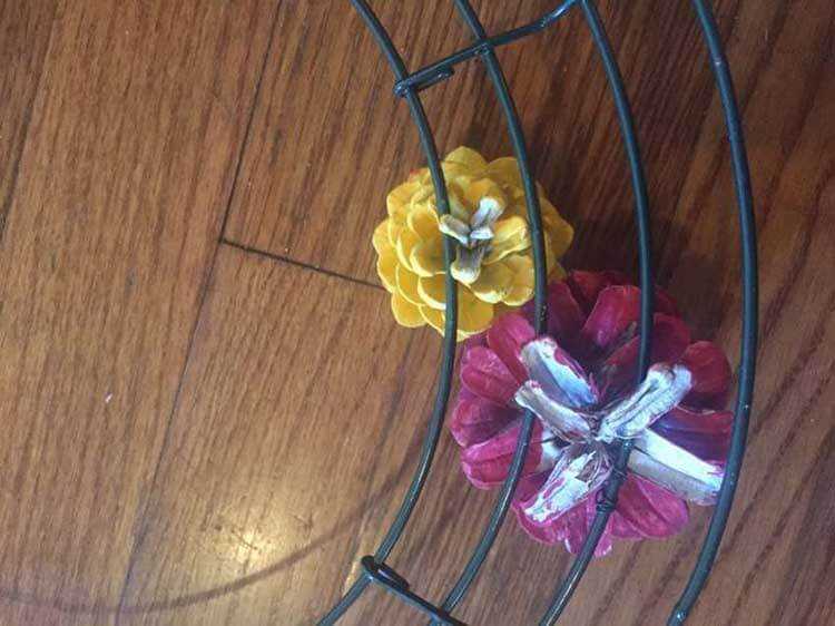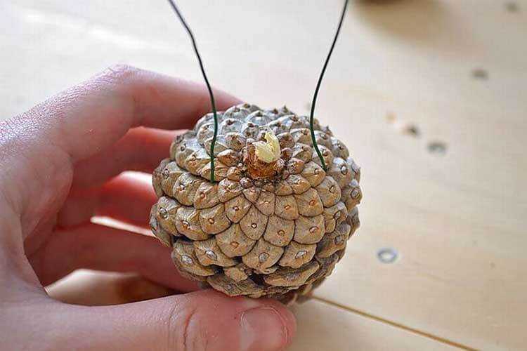 С помощью тонкой проволоки привязывайте шишки к основе.